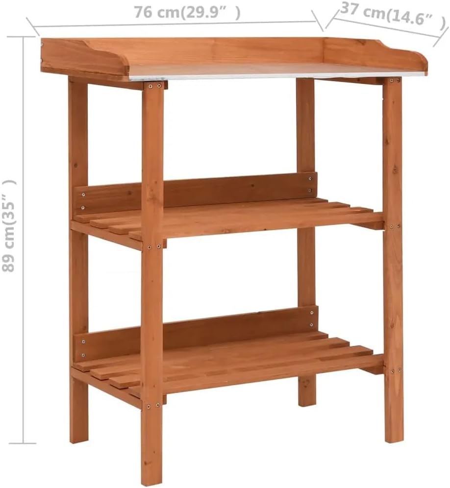 Potting Bench, Work Station with Fir Wooden Building & Metallic Tabletop, Backyard Planting Desk w/Open Cabinets , Gardening Desk Potting Desk for Exterior Yard Balcony (Hooks not embrace)