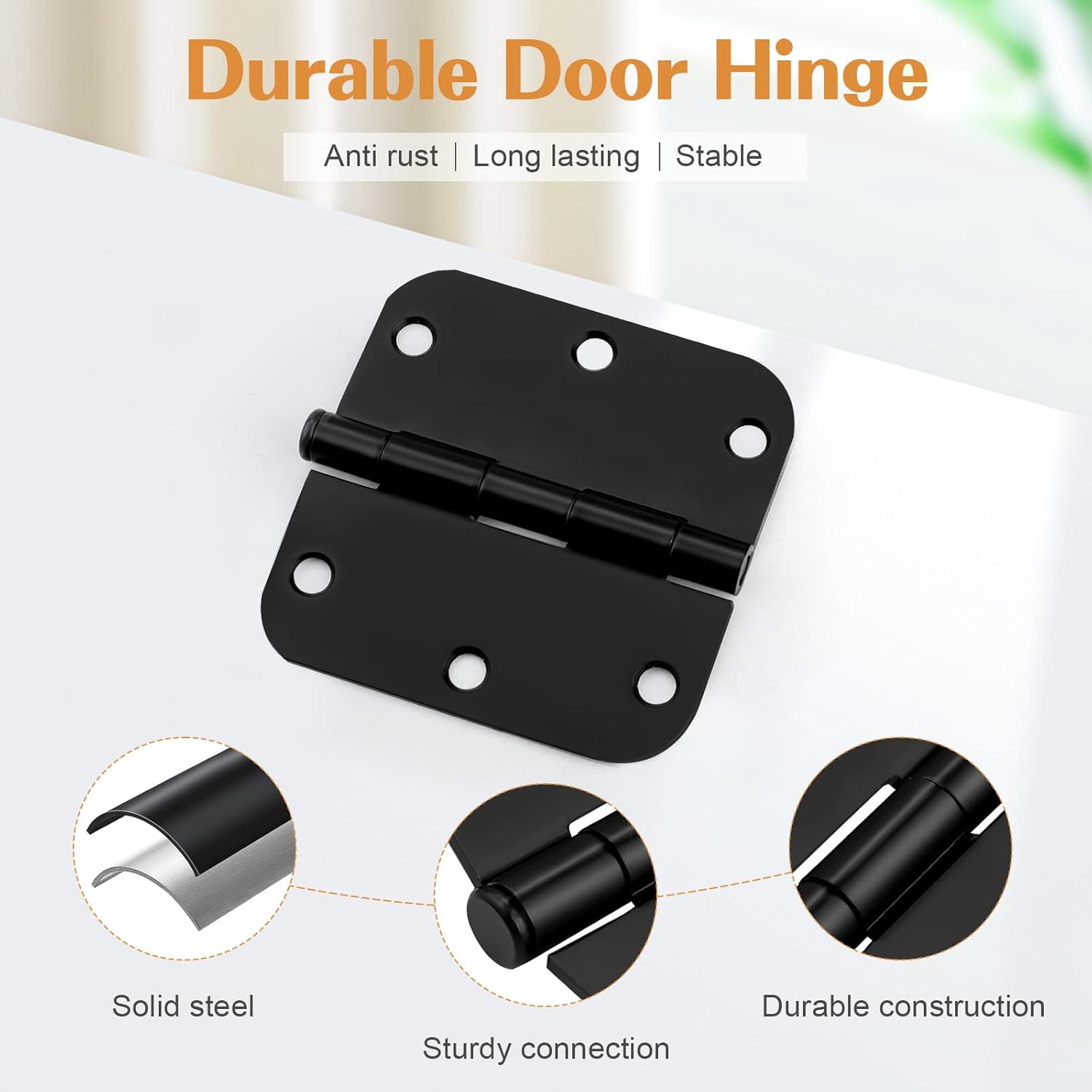 Probrico Interior Door Hinges Black, 3.5 X 3.5 Inch Door Hinges Rounded 5/8″ Radius Corners, Black Hinges for Door Hardware, 30 Pack