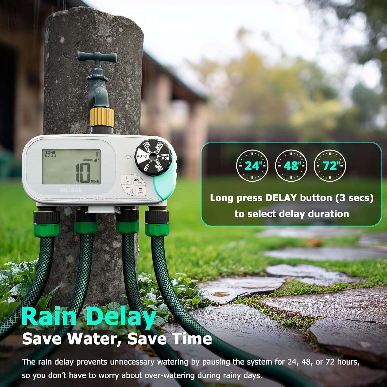 【4 Impartial Zones】The Quobas WT14 sprinkler timer options 4 independently managed retailers, permitting you to water a number of areas from a single faucet. Every zone operates like a separate timer, supplying you with full management to effectively handle irrigation for gardens, lawns, and yards.