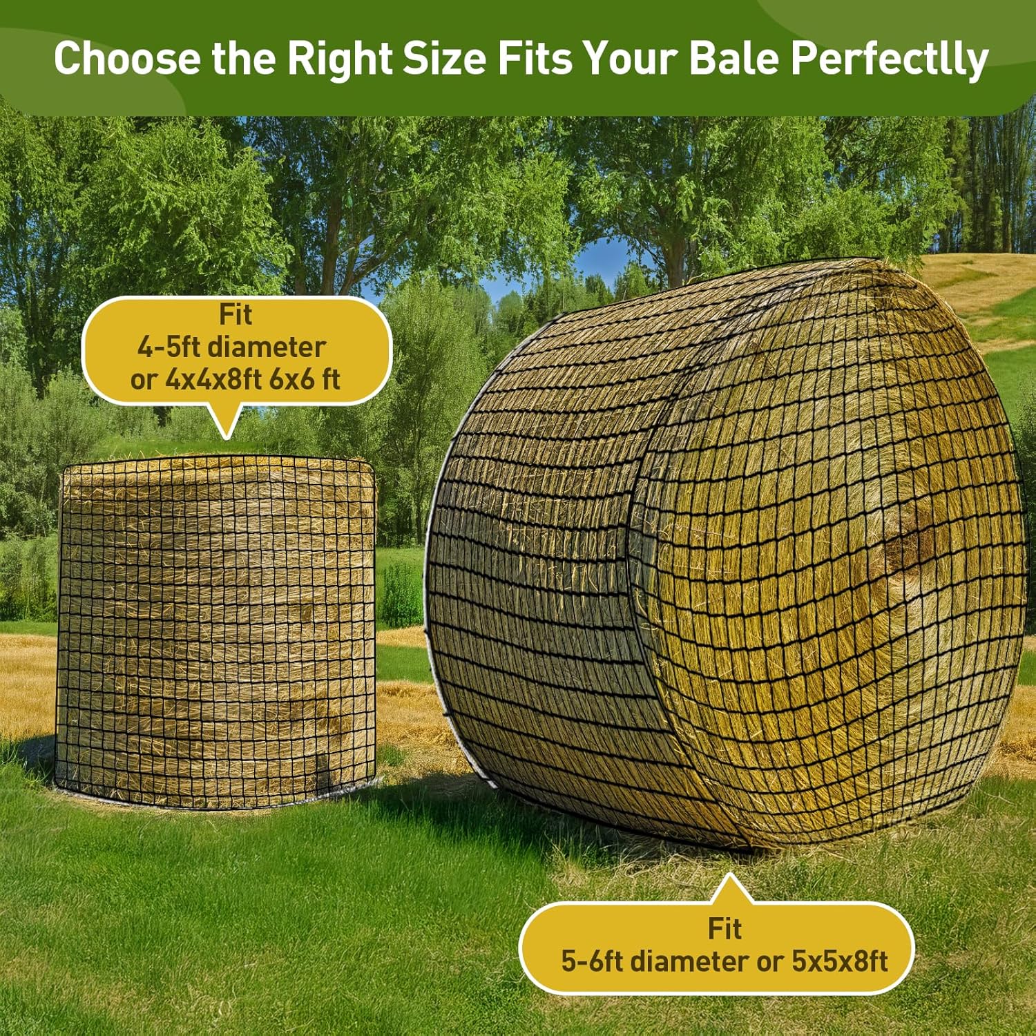 【Matches Giant Spherical Bales】 – Completely sized to suit 6×6 ft spherical hay bales in addition to 5×5 ft, 4×5 ft, and 4×4 ft bales. The stretchable and robust materials permits for simple loading whereas making certain safe and constant hay distribution for horses, goats, and livestock.