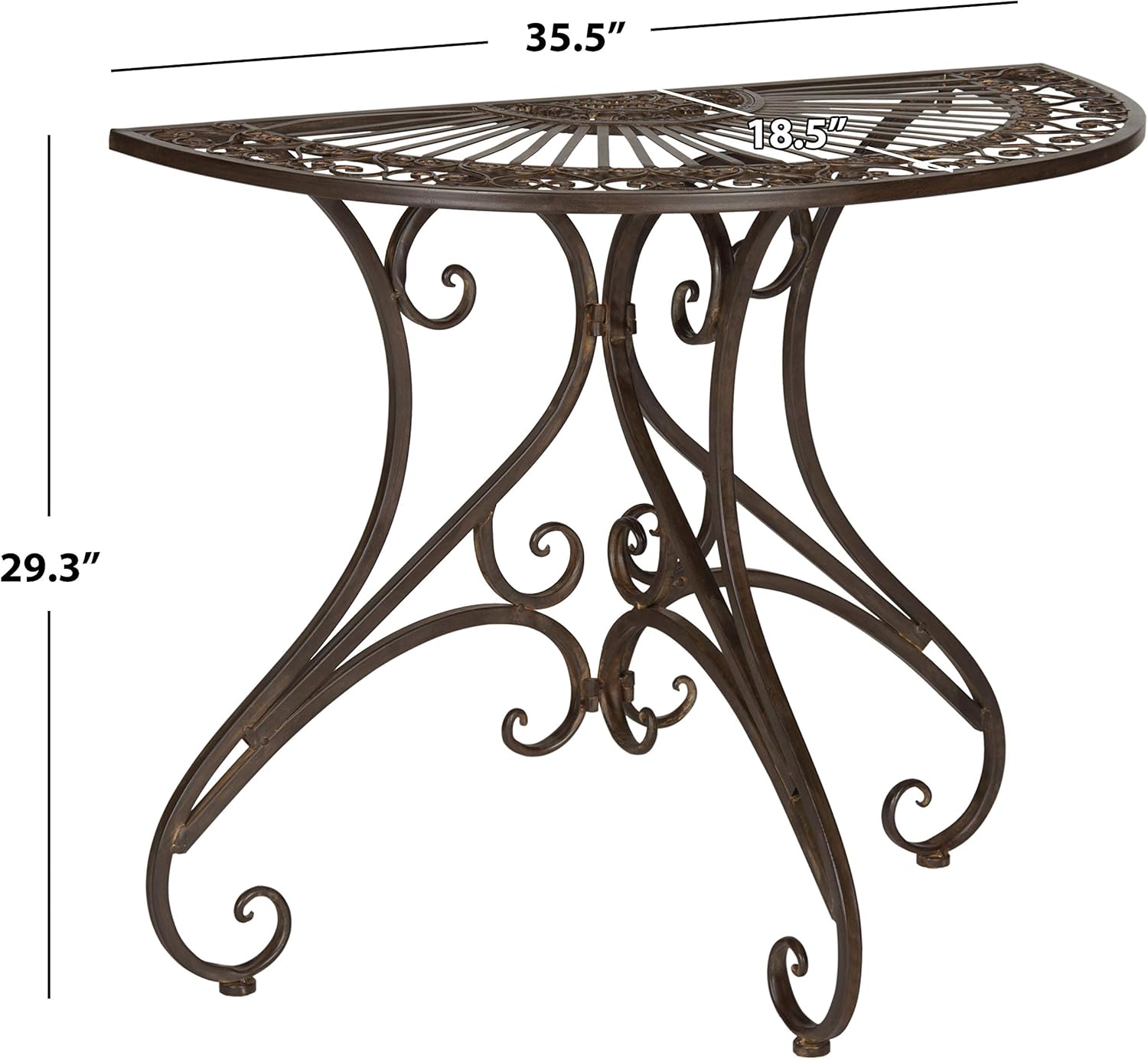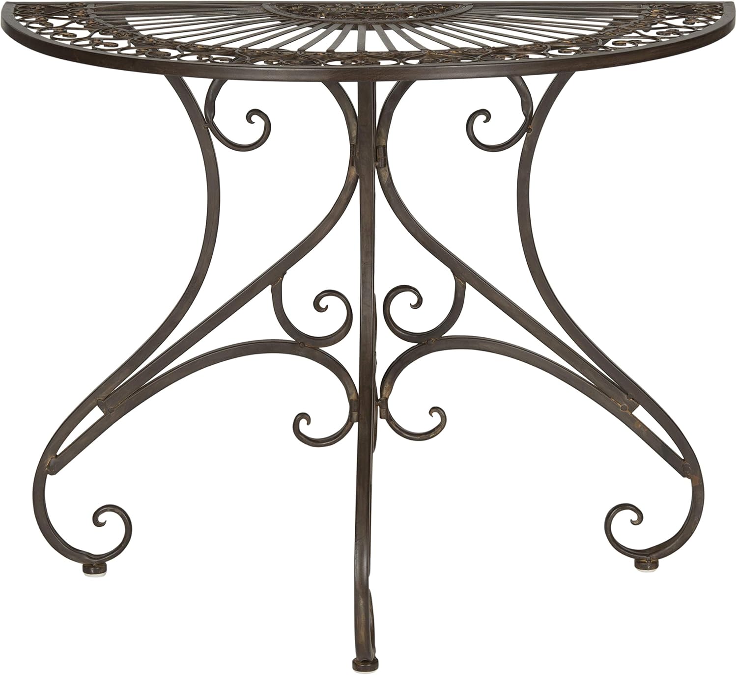 Diminutive however brimming with Victorian appeal, this beautiful half-round accent desk in rustic brown iron is right as a console or aspect desk on a porch, patio, and even in an entry corridor. Intricate ironwork conjures photos of romantic Southern gardens.