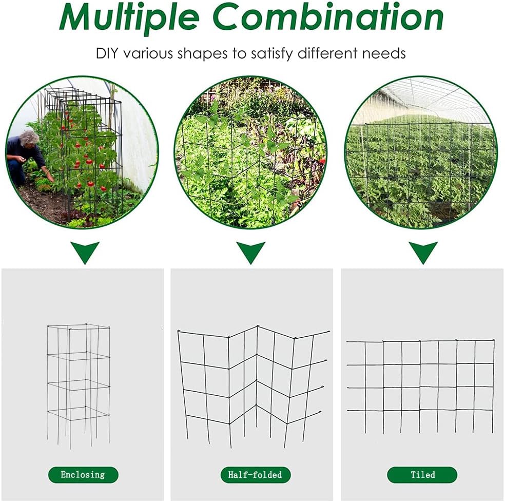 🍅【Foldable and Versatile Mixture】For house saving, every tomato trellis will be folded flat into 1 / 4 of the unique dimension to be saved at any nook. Moreover, you may join extra tomato plant cage collectively into an even bigger cage or into completely different shapes, like half-folded, tiled or irregular.