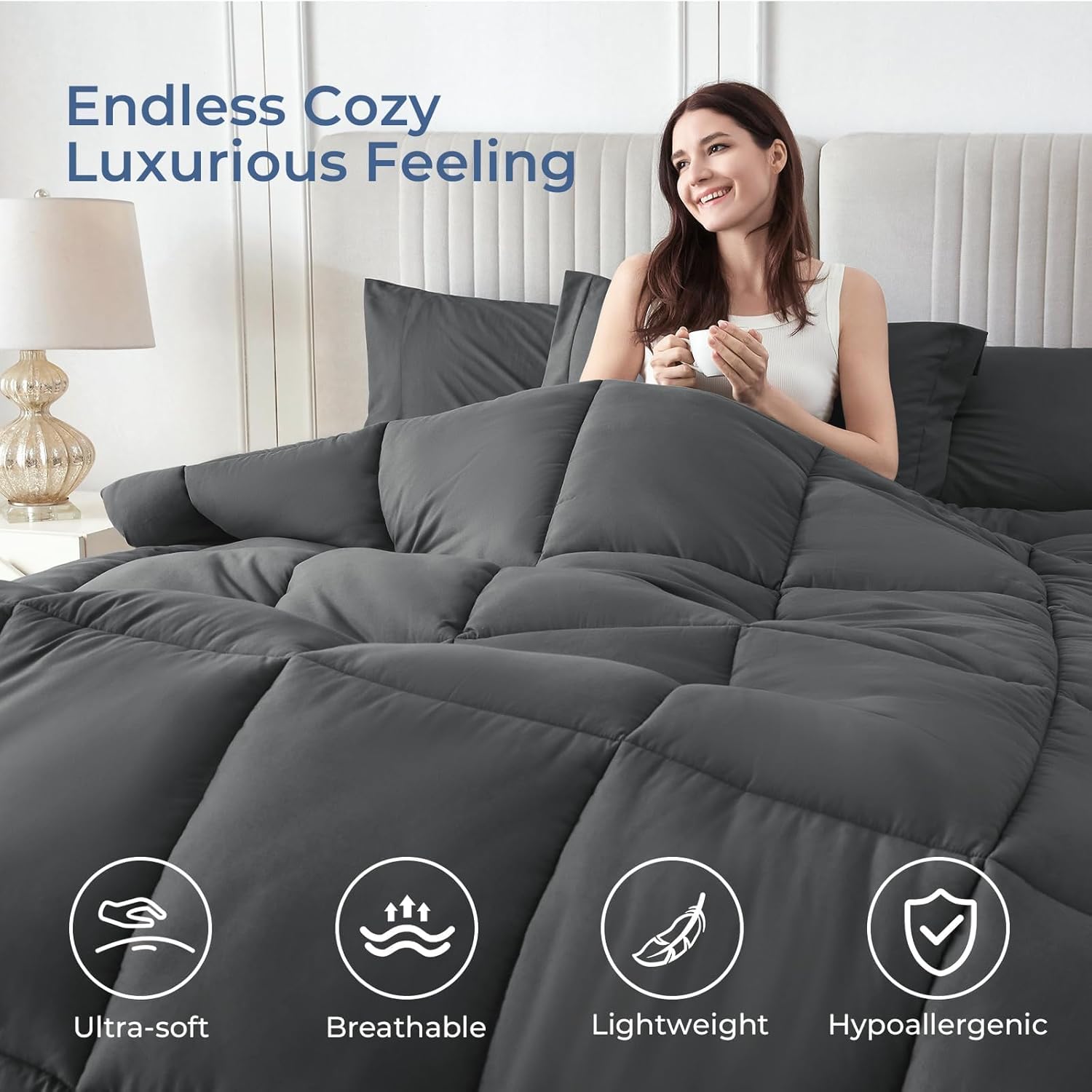 All Season Heat: Stuffed with 280GSM down various filling, our comforter strikes an awesome stability between light-weight and heat. Its sewn by way of design additionally prevents filling from shifting or bunching, retains the filling in place for long-lasting use