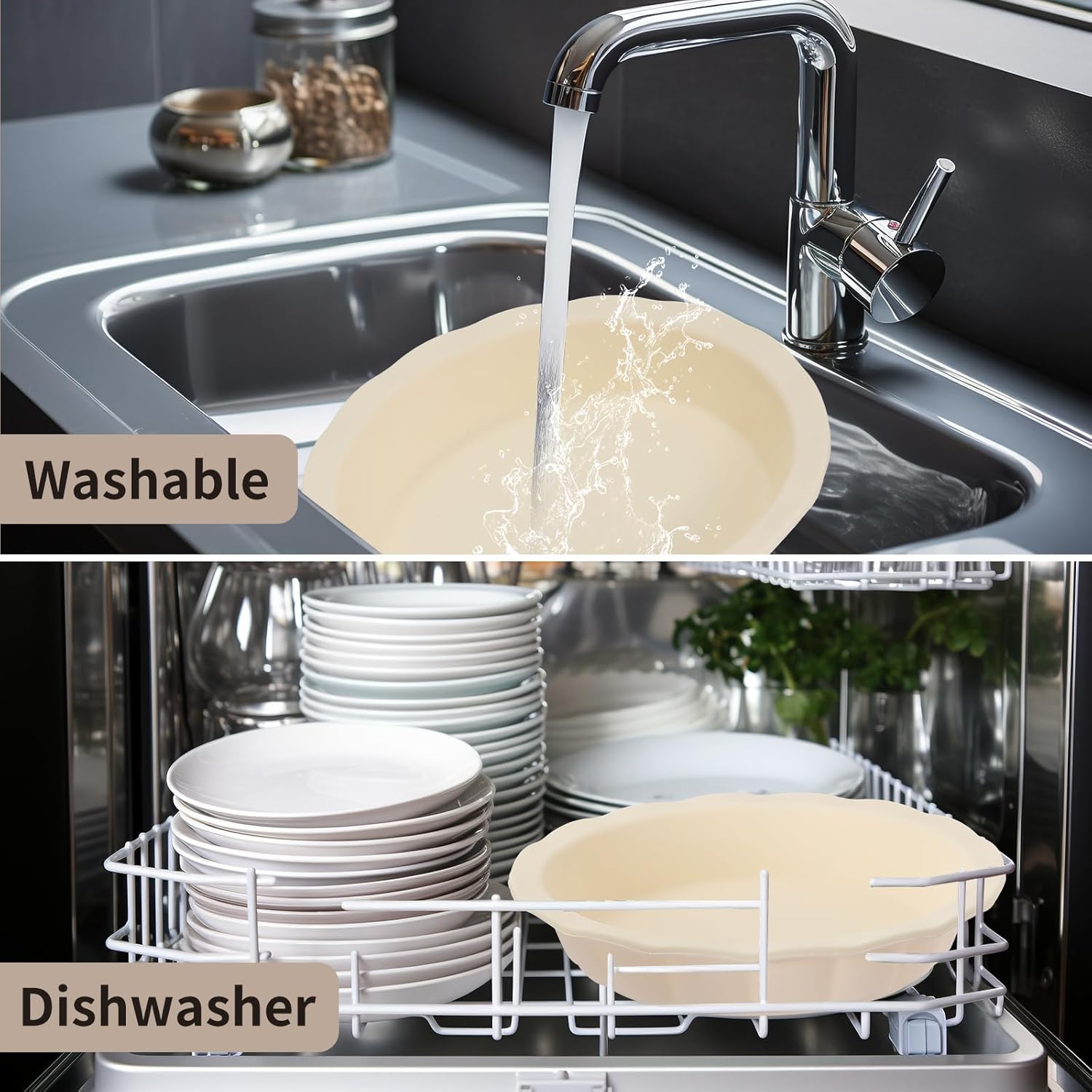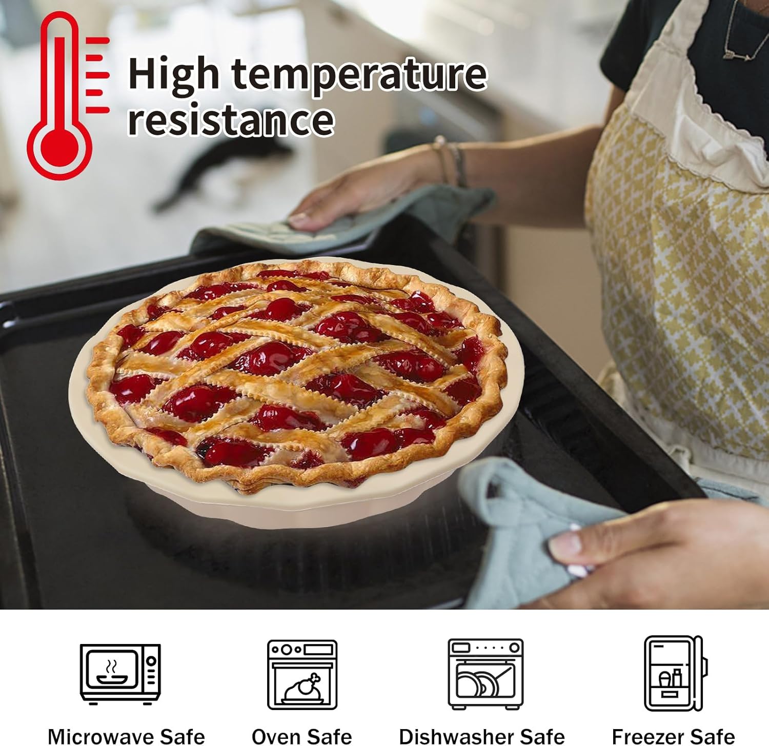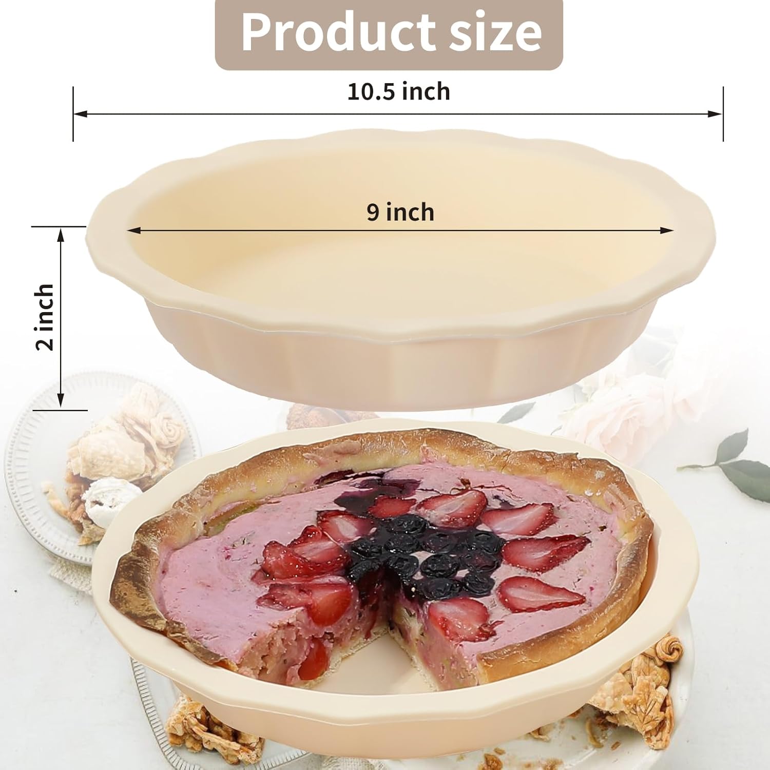 Comparied with ceramic, glass dishware, our thicken silicone pie pan is sturdy with out beging too heavy. Measures 9 inches of internal diameter, 10.5 inches of outer diameter.