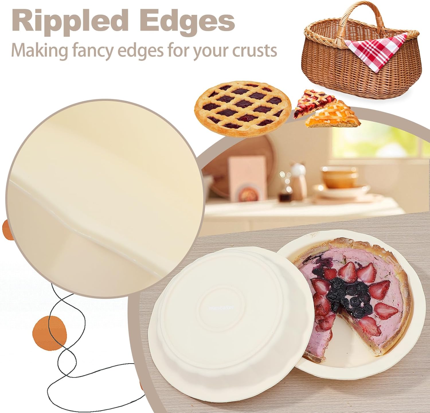 A stunning design that is excellent for serving. The silicone fluted rim makes it simple to crimp down the pie dough for a beautiful and higher pie crust.