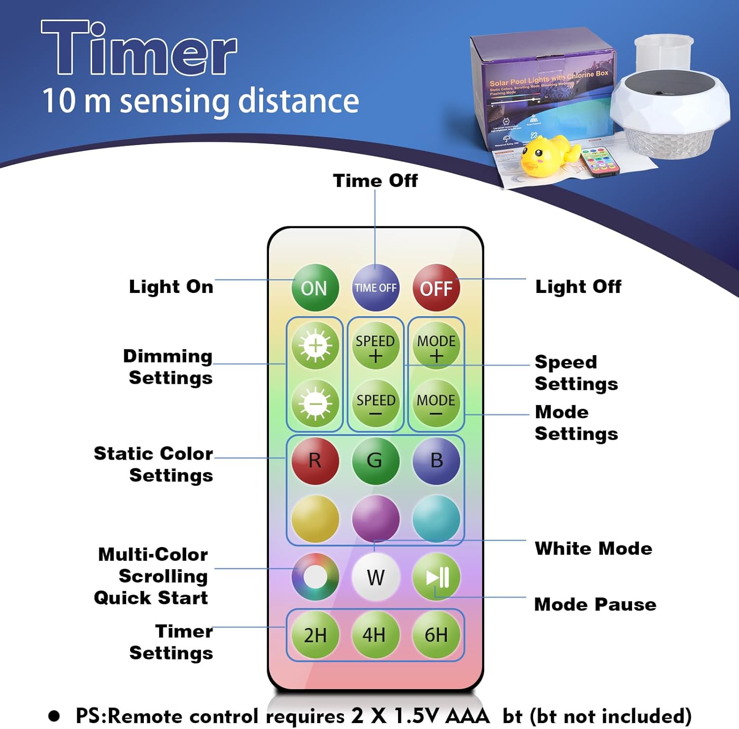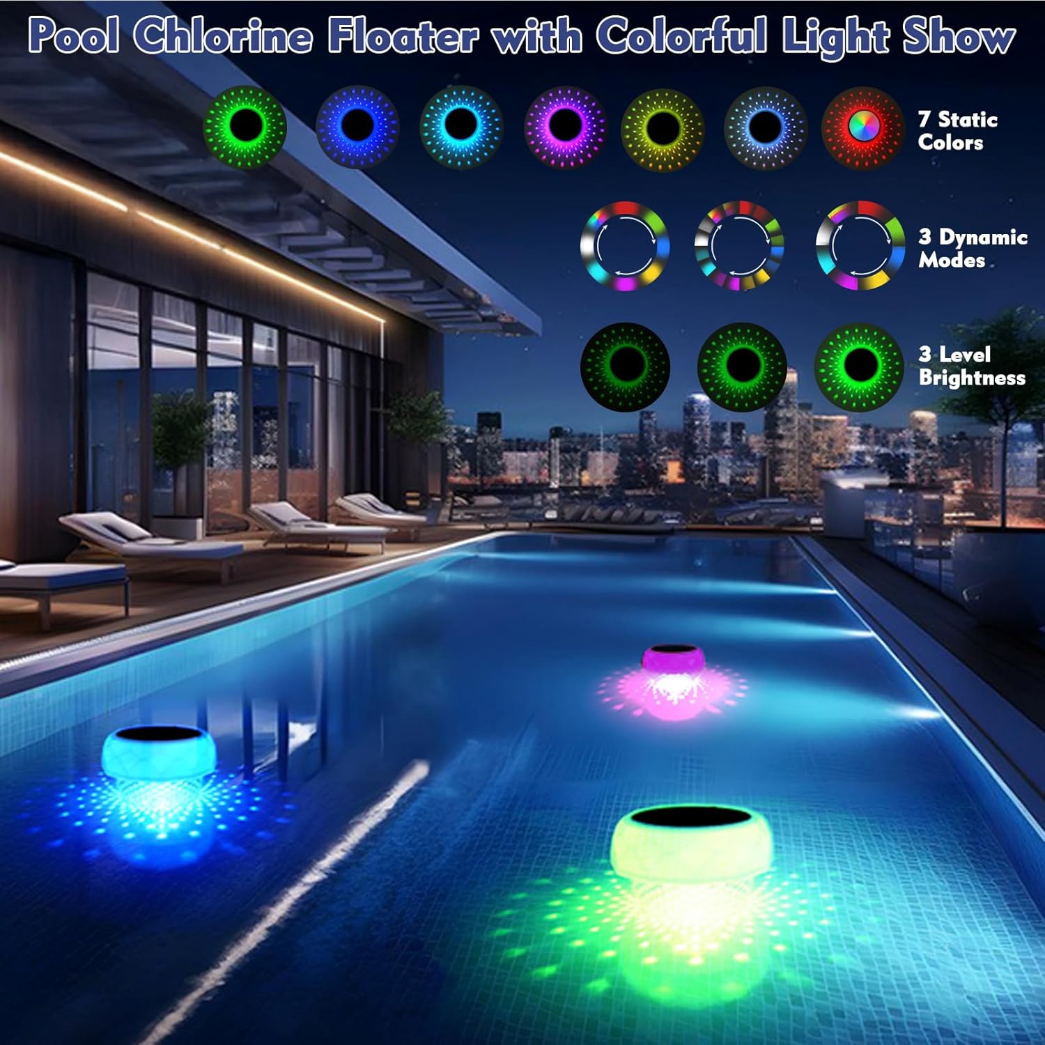 Sensible Lighting Results: The pool chlorine floater photo voltaic gentle has sluggish fade or flash show and the colour patterns are mesmerizing. The floating chlorine dispenser’s gentle spins round and casts a faceted number of lights at evening. The colour lights make your pool or patio completely different and no extra boring nighttime swims! Furthermore, outfitted with distant controller, so simply modify of seven vibrant colours, 3 degree brightness, 3 completely different lighting modes in addition to timer of 2H/4H/6H.