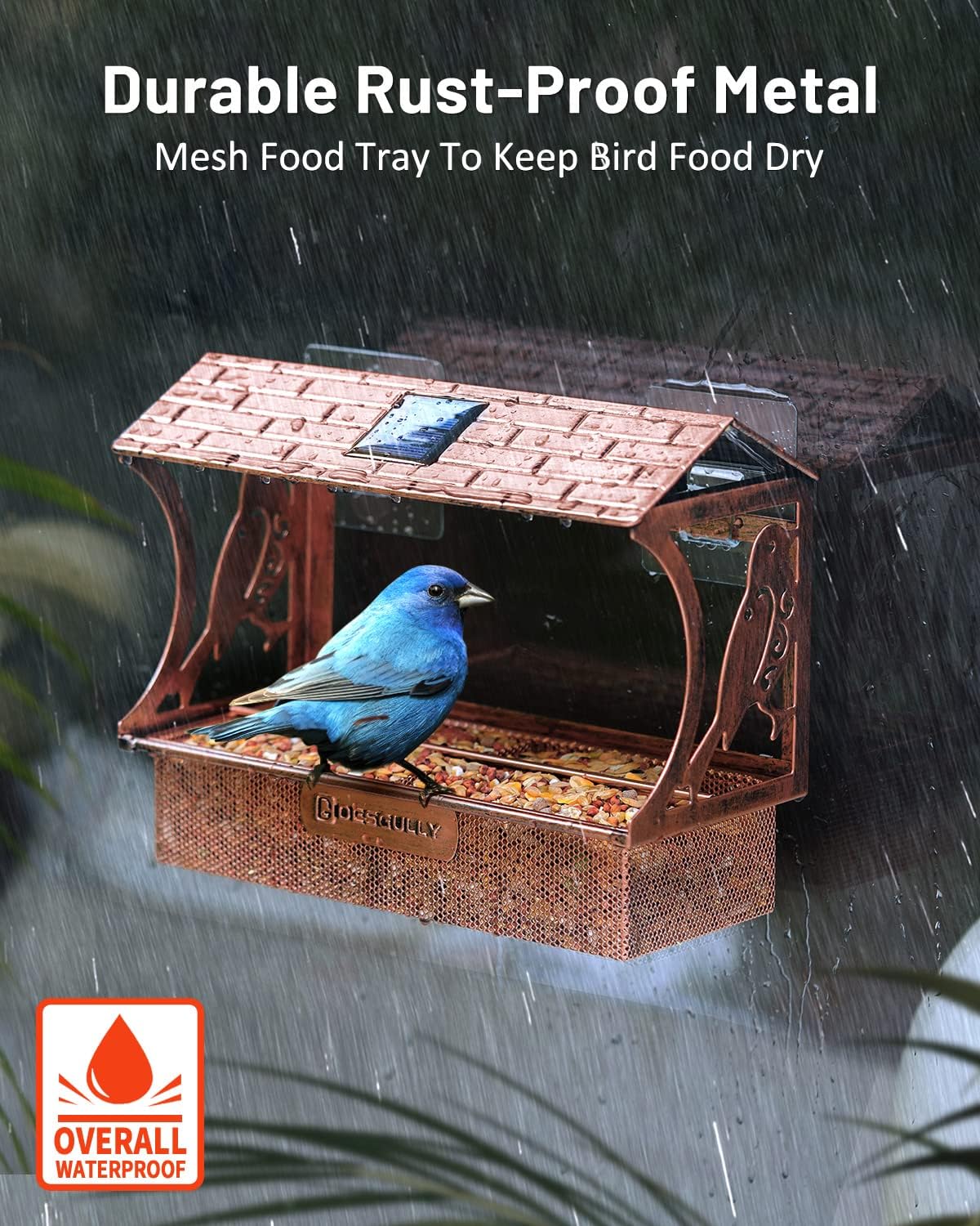 Photo voltaic Metallic Window Hen Feeder: Daytime hen feeder, nighttime photo voltaic gentle. Lasts 8-10 hours after charging. Excellent in your patio or backyard—place in full daylight