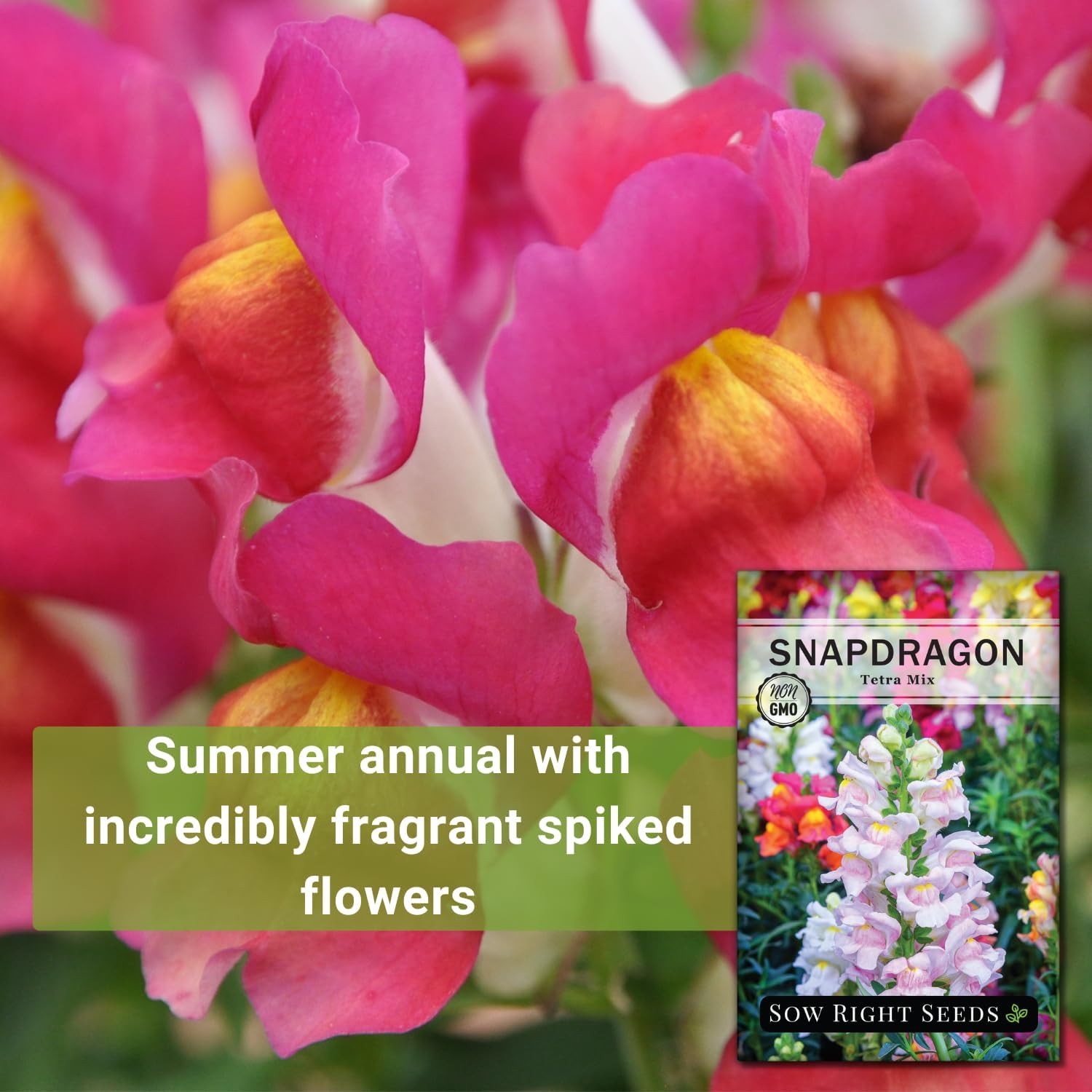 Stunning – Full colour seed packets of Tetra Combine Snapdragon flowers (Antirrhinum majus). This annual semi-dwarf number of snapdragon produces giant ruffled flowers in shades of pink, purple, pink, yellow, and white. Blooms spring via fall. Get pleasure from outdoor within the backyard or as a reduce flower indoors. Minimal of 400 mg (about 2000 seeds).
