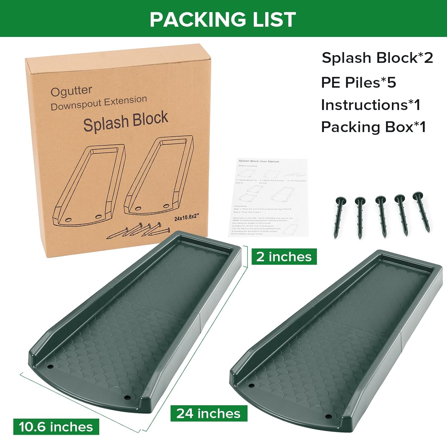Broadly Used: The size of every splash block are 24″L x 10.6″W x 2″H. It’s not affected by the scale of the downpipe outlet and can be utilized with any sort of downspout