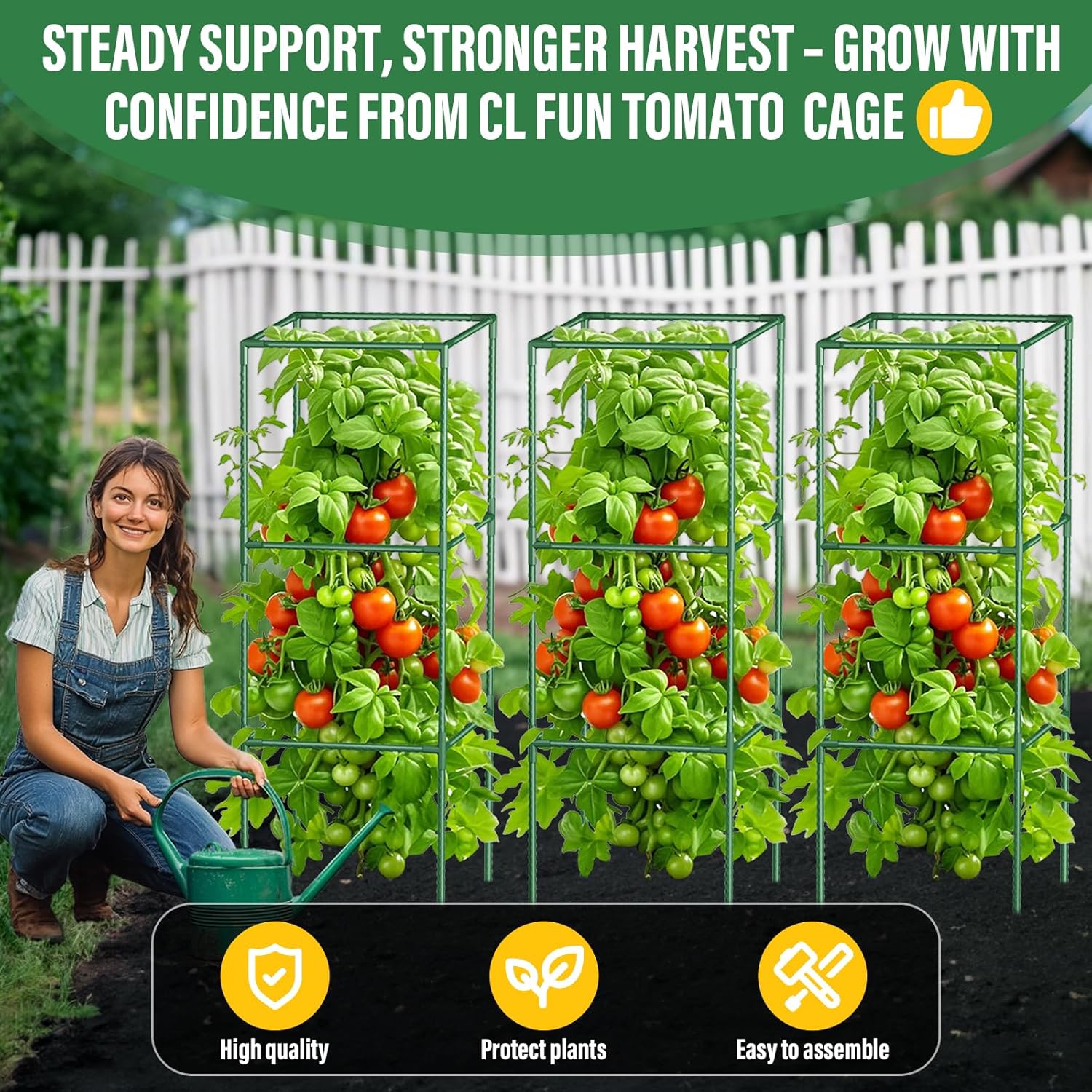 【Sturdy Tomato Cages for Backyard】Fabricated from a steel core and sturdy plastic coating, our sq. tomato cage resist rust and bending,holding up 3X higher than flimsy wire cages. CL FUN tomato trellis cage retains your tomatoes, cucumbers, and climbing crops develop upright all season, even in wind and rain!