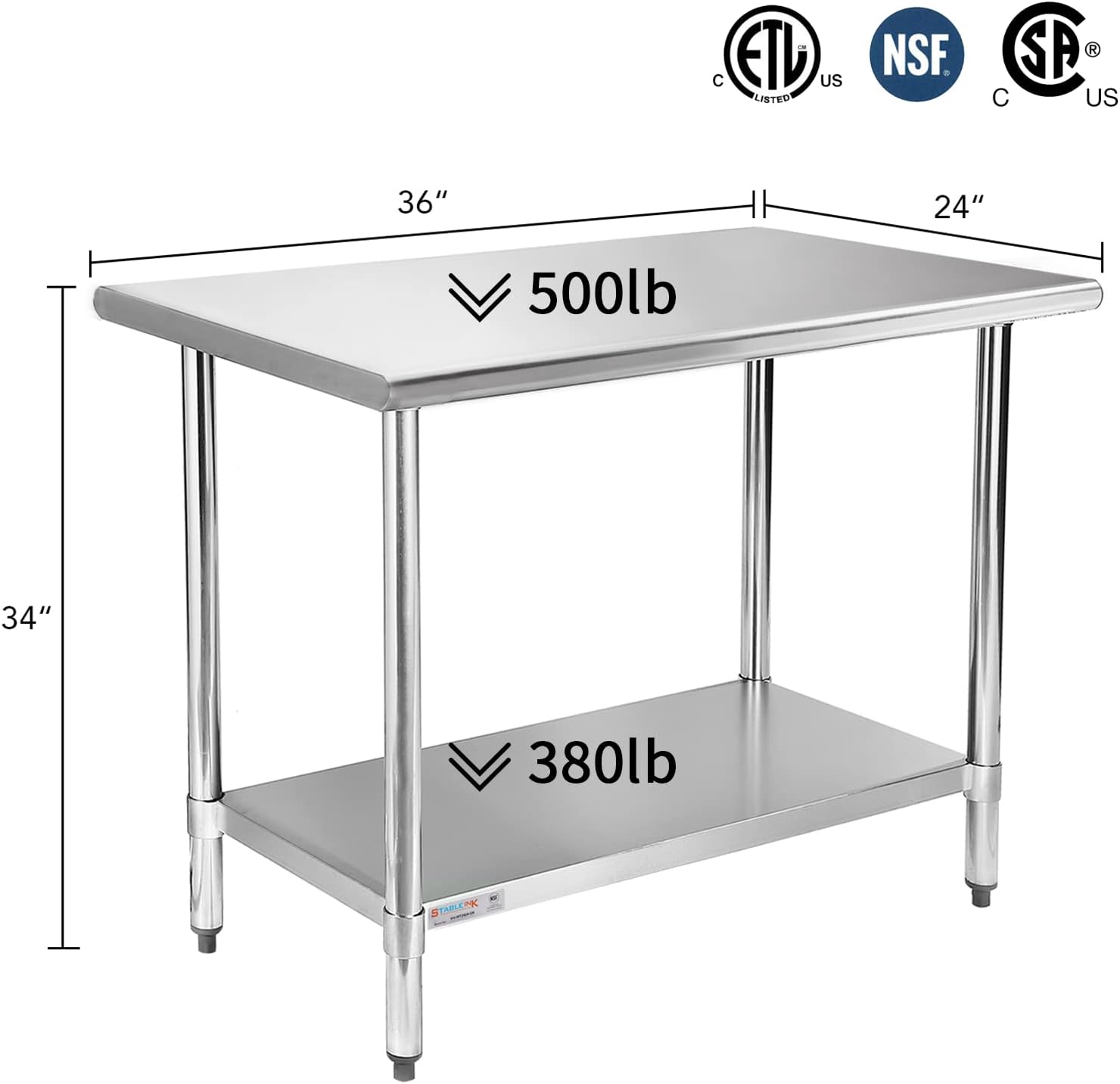 Giant and Sensible Storage: Double-layer workbenches improve cupboard space. Prime shelf load capability is 500 lbs, and the beneath shelf can carry 380 lbs. Dimension 24 x 36 inches, give you sufficient storage room for microwave oven, kitchen utensils or every other instruments