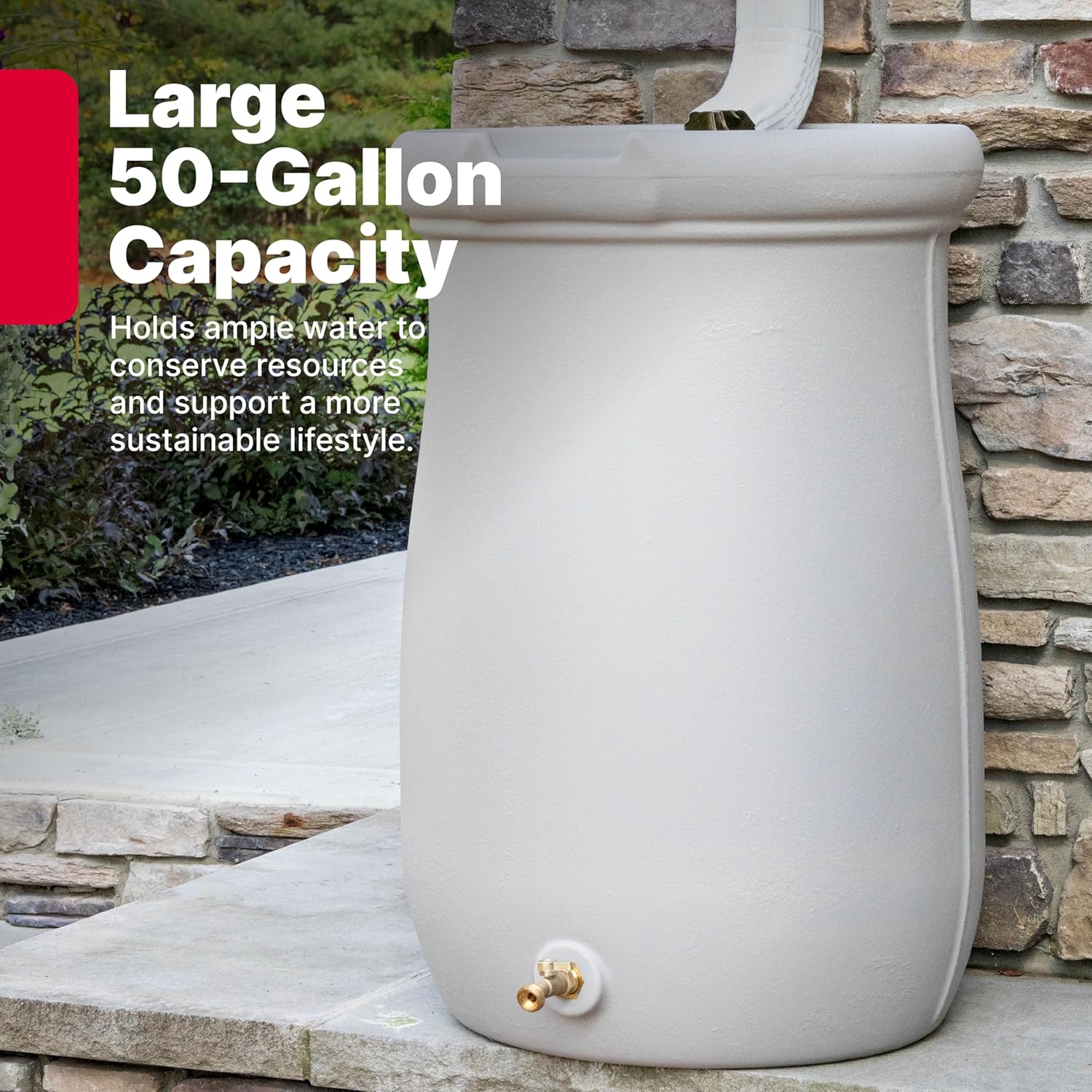 HOLDS 50 GALLONS: Captures ample rainwater to preserve sources and helps a sustainable way of life