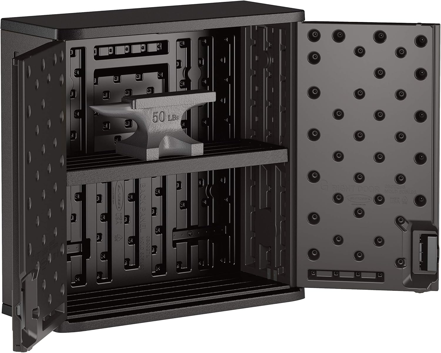 ADJUSTABLE SHELVING: Encompasses a sturdy metal-reinforced shelf able to supporting as much as 50 lbs., permitting you to customise the cupboard’s inside to suit a wide range of heavy-duty instruments and tools