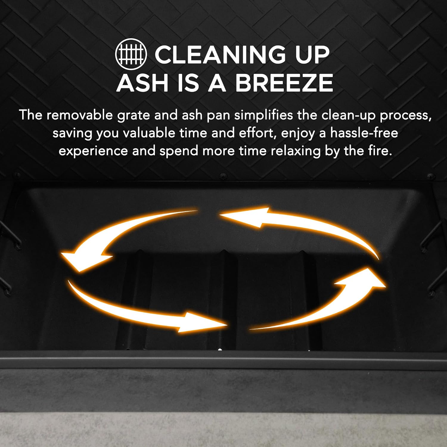 Cleaning Up Ash is a Breeze: The removable grate and ash pan simplifies the clean-up process, saving you valuable time and effort; enjoy a hassle-free experience and spend more time relaxing by the fire.