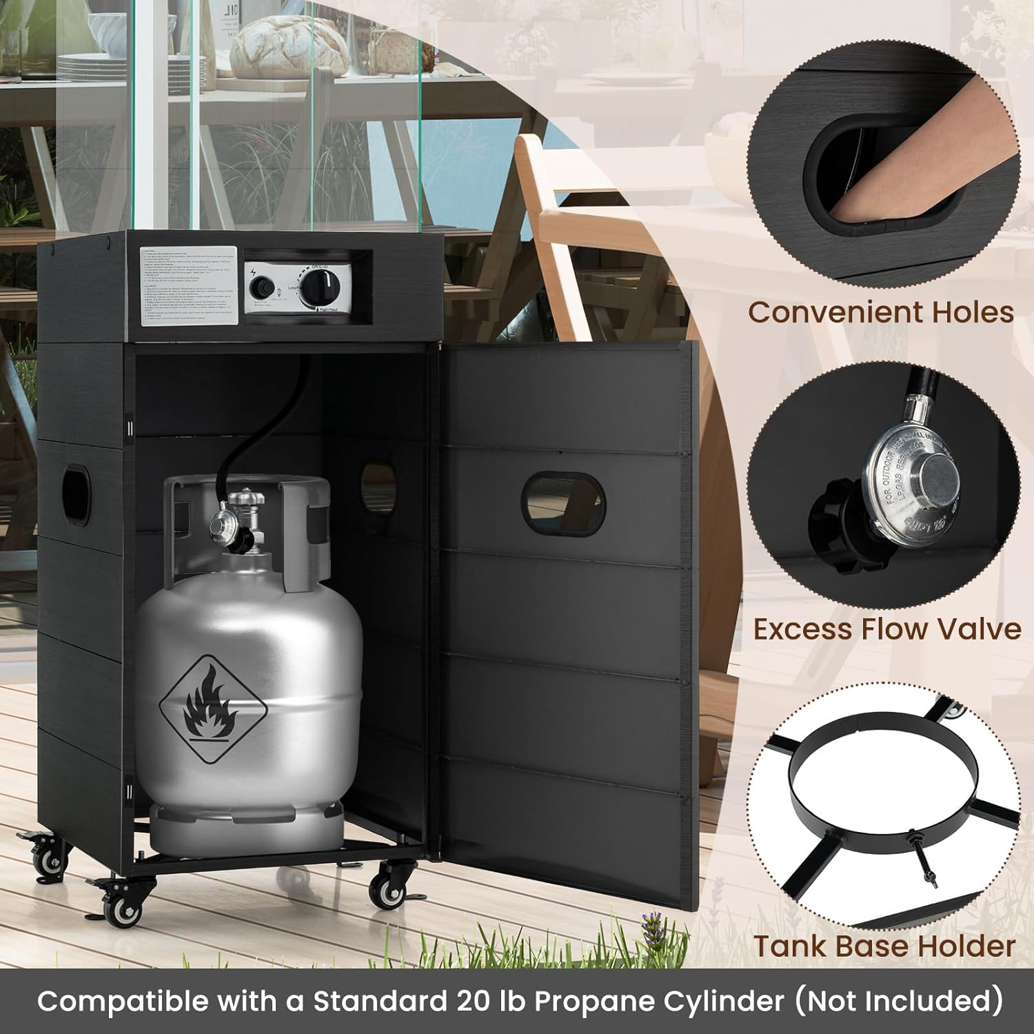 The door with handy holes permits you to entry the propane tank simply