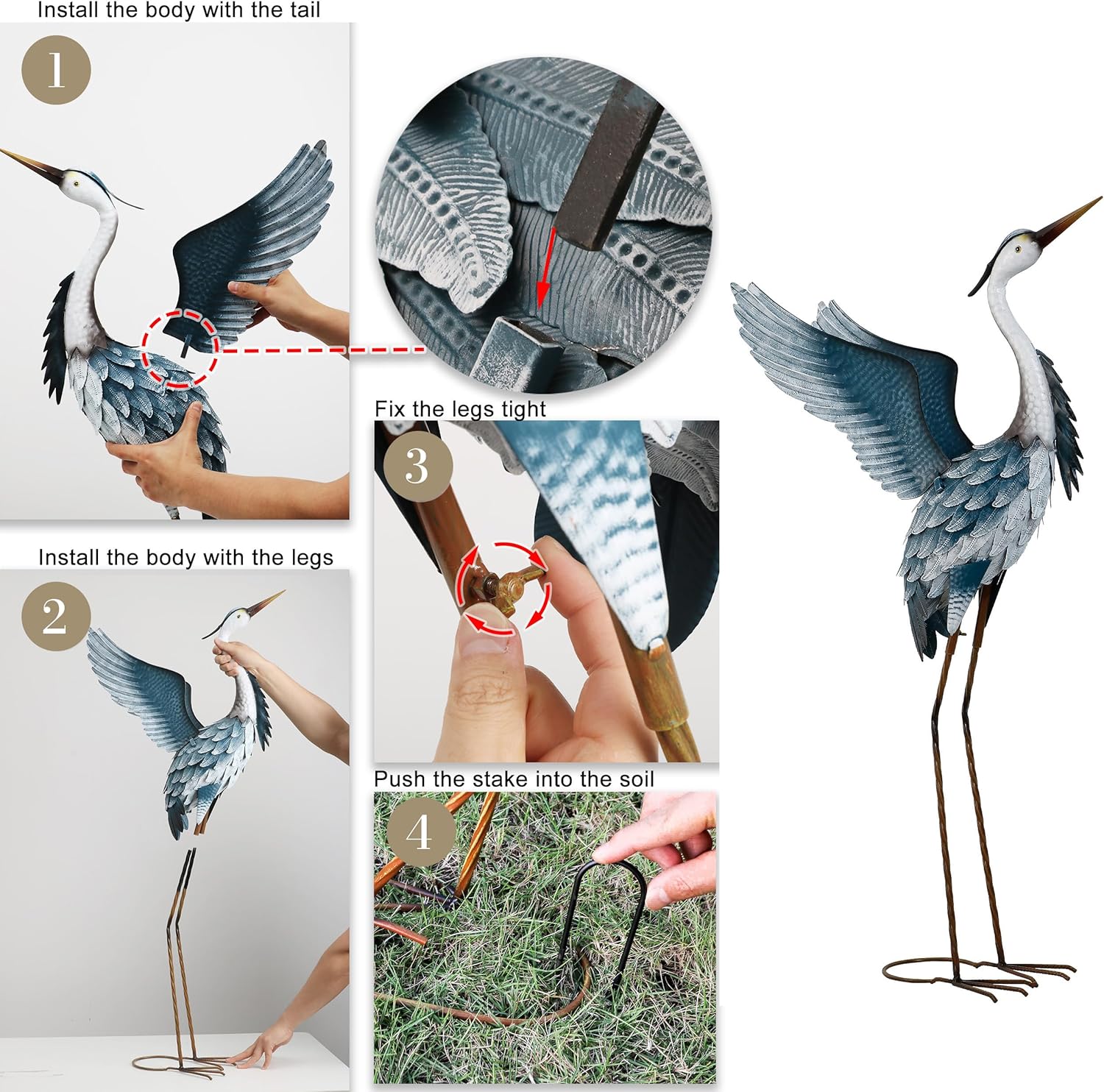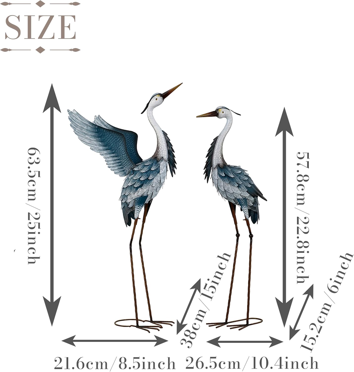 【Unique Design】It is a pair of out of doors metallic statues of blue herons with completely different shapes. They’re depicted with their heads held excessive and wings unfold, exuding a noble and stylish posture. The feathers are vividly coloured and extremely practical, all hand-painted by artisans stroke by stroke, bringing your outside backyard to life.