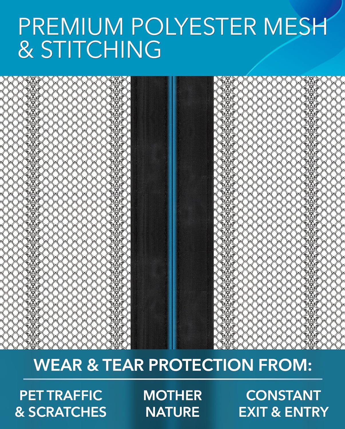 Durable & High Quality Mesh: Made from strengthened polyester mesh, this magnetic door screen ensures long-lasting use and withstands frequent use. The kid and pet-friendly design allows for easy passage without causing damage