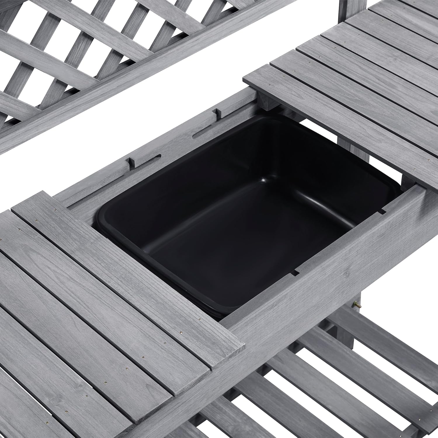 Topeakmart Potting Desk Wooden Workstation Desk w/Sliding Tabletop w/Detachable Dry Sink Storage Cabinets Out of doors Backyard Grey