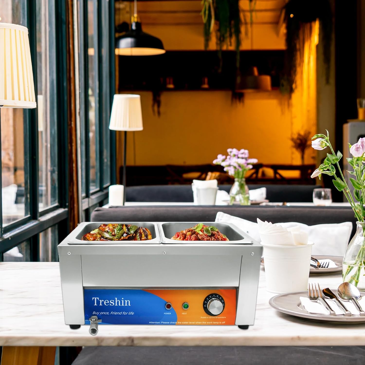 Protected & Dependable: The meals hotter is provided with an anti dry burning system that robotically stops heating when the water stage is simply too low. Additionally it is geared up with a drainage faucet, which might simply drain extra liquid from the container. Please be aware that the equipment embody uncooked tape, please you should definitely wrap the uncooked tape earlier than putting in the drain faucet to keep away from water leaks. The underside of the meals hotter has a warmth dissipation gap, which might defend the wire from getting older simply