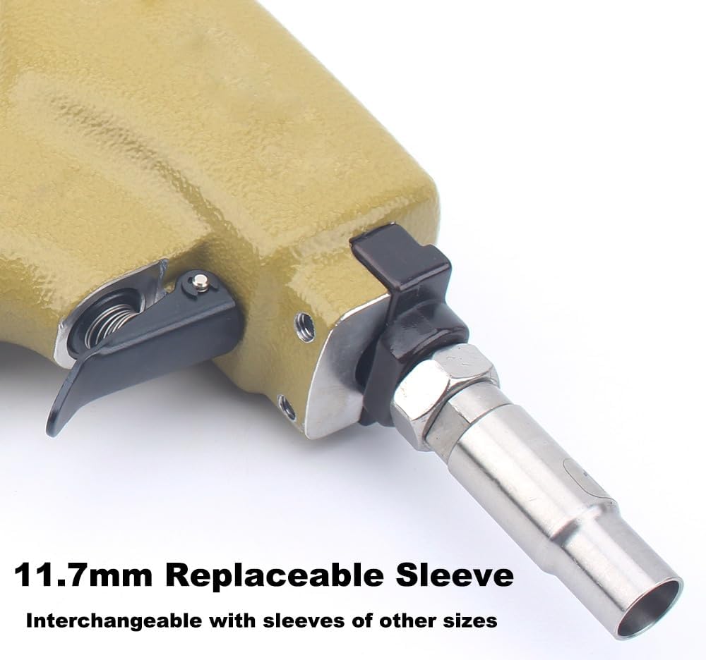 Nail gun outfitted with a magnetic sleeve, precision CNC machined, put on resistant, simple to tug 11.7mm upholstery tack nails, which might be changed by sleeves of different sizes for tack nails of different diameters
