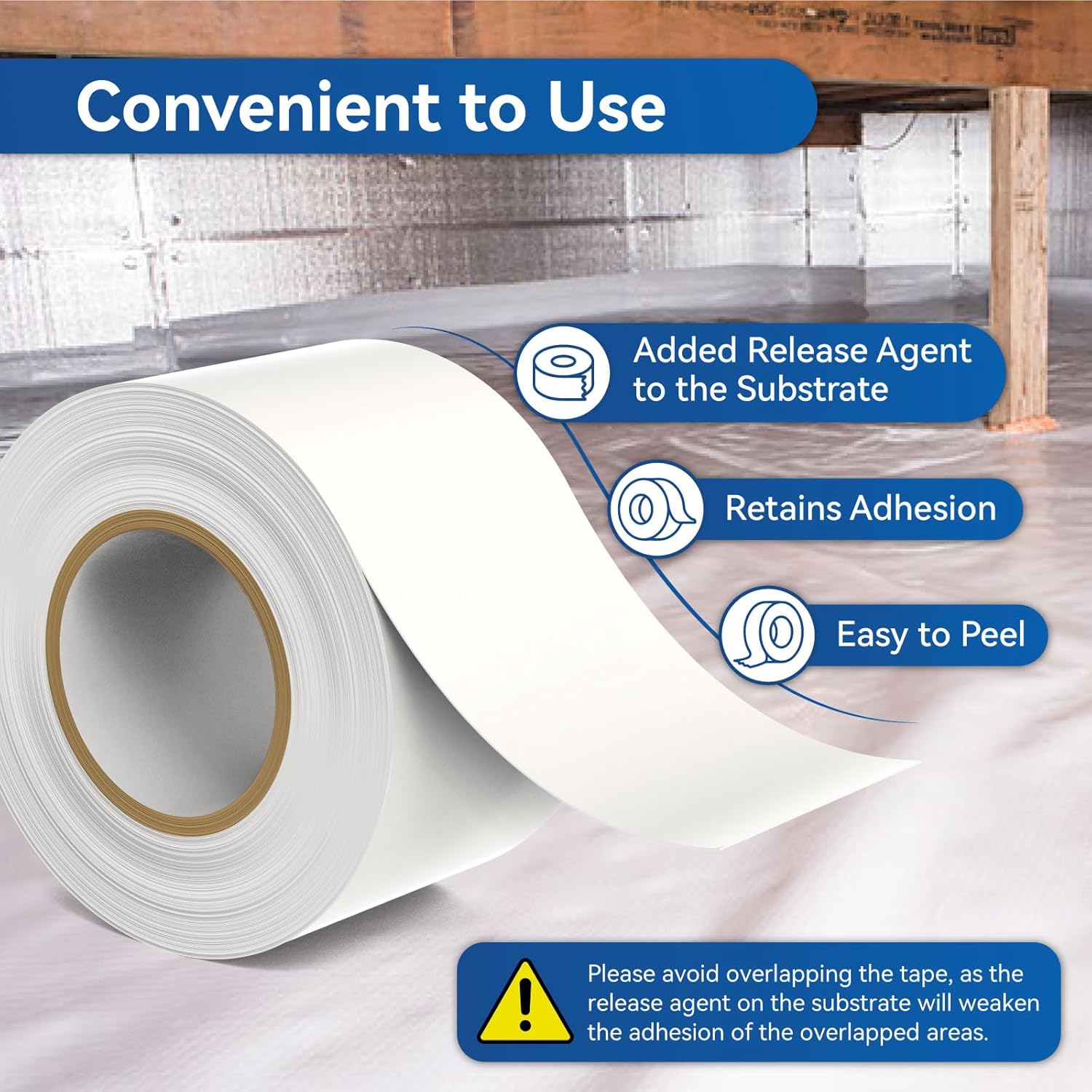 Heavy-Responsibility Business Grade: The white moisture barrier tape measures 3.6 inches extensive by 180 toes lengthy with a thickness of 9mil. It boasts excessive sturdiness, robust adhesion, insulation, weatherproofing, and waterproofing, designed to face up to the hardest circumstances, making certain fast and dependable job completion.