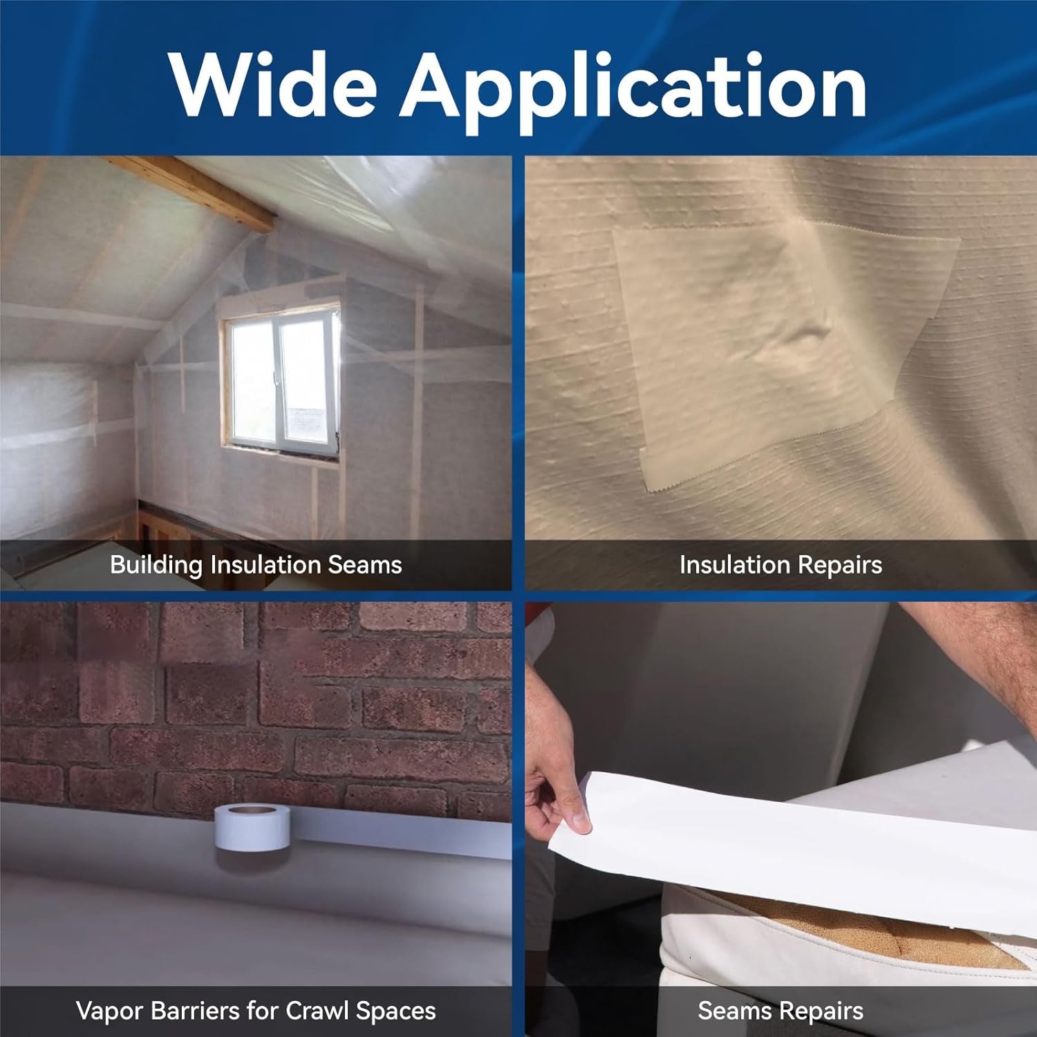 Moisture-Proof Sealing: Create a safe seal with our insulation tape. Supplies an ideal sealant for seaming and sealing poly liners in crawl area restore, vapor barrier, and canvas purposes. The seam tape is sturdy and waterproof, appropriate for numerous environments, with an working temperature vary of -40℃ to 90℃.