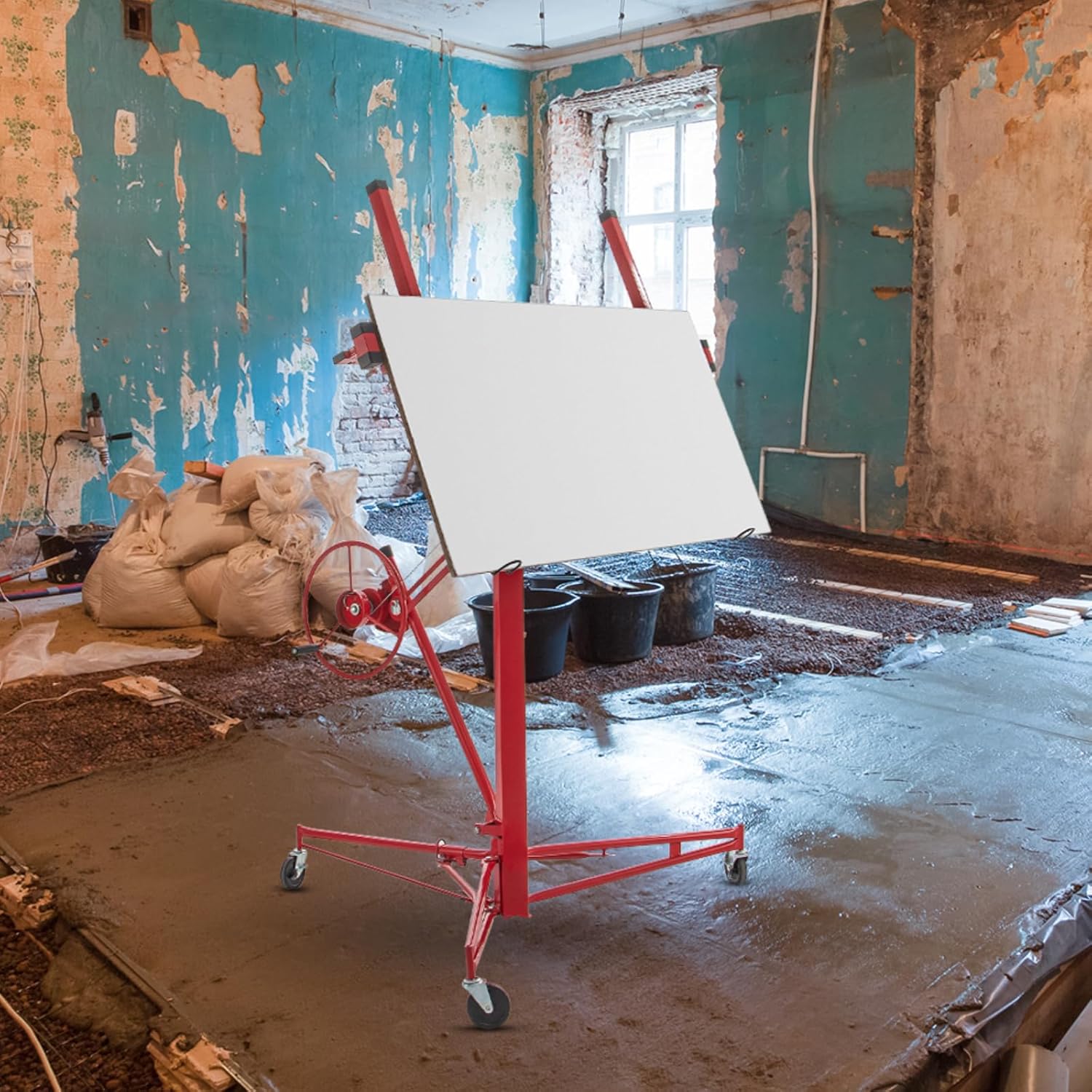 Wonderful Compatibility: This drywall elevate options an adjustable telescopic arm with a variety of 49 to 114 inches, accommodating plasterboards from the smallest 4×16 inch panels to the biggest 48×96 inch sheets. The lifting top ranges from 6 toes to 16 toes (roughly 190 cm to 486 cm), appropriate for numerous functions. With a most weight capability of 150 lbs, it will possibly elevate a number of panels without delay, doubling effectivity