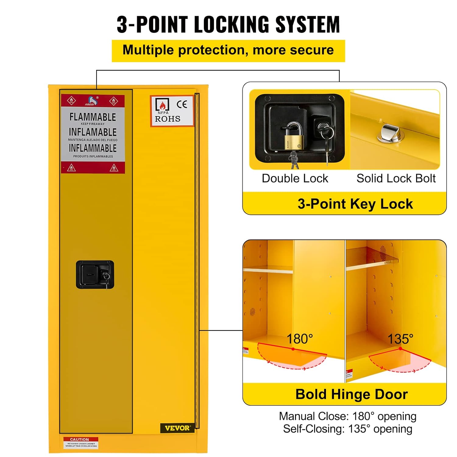 Our gasoline storage cupboard is supplied with a safe three-point key lock mechanism, offering added safety to your saved objects and avoiding any potential hazards. Moreover, the door might be manually opened to a 180° angle for handy entry and storage.
