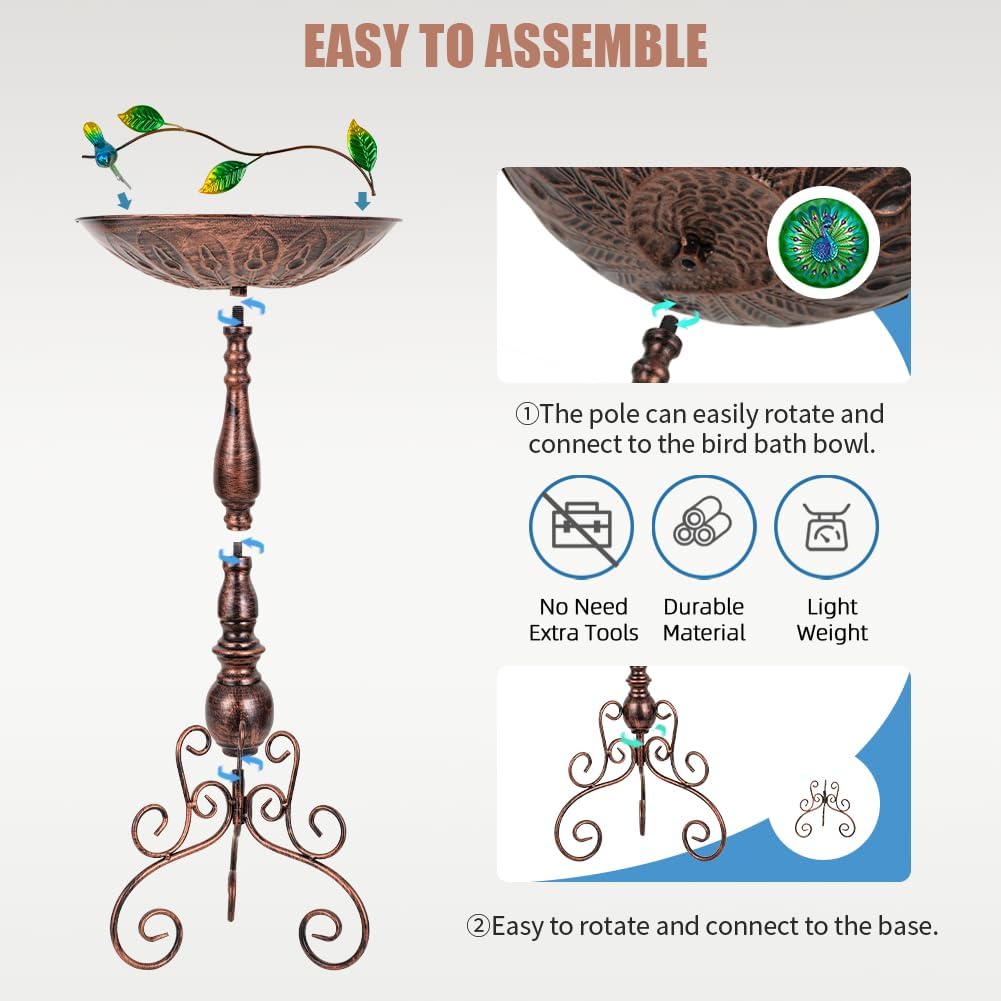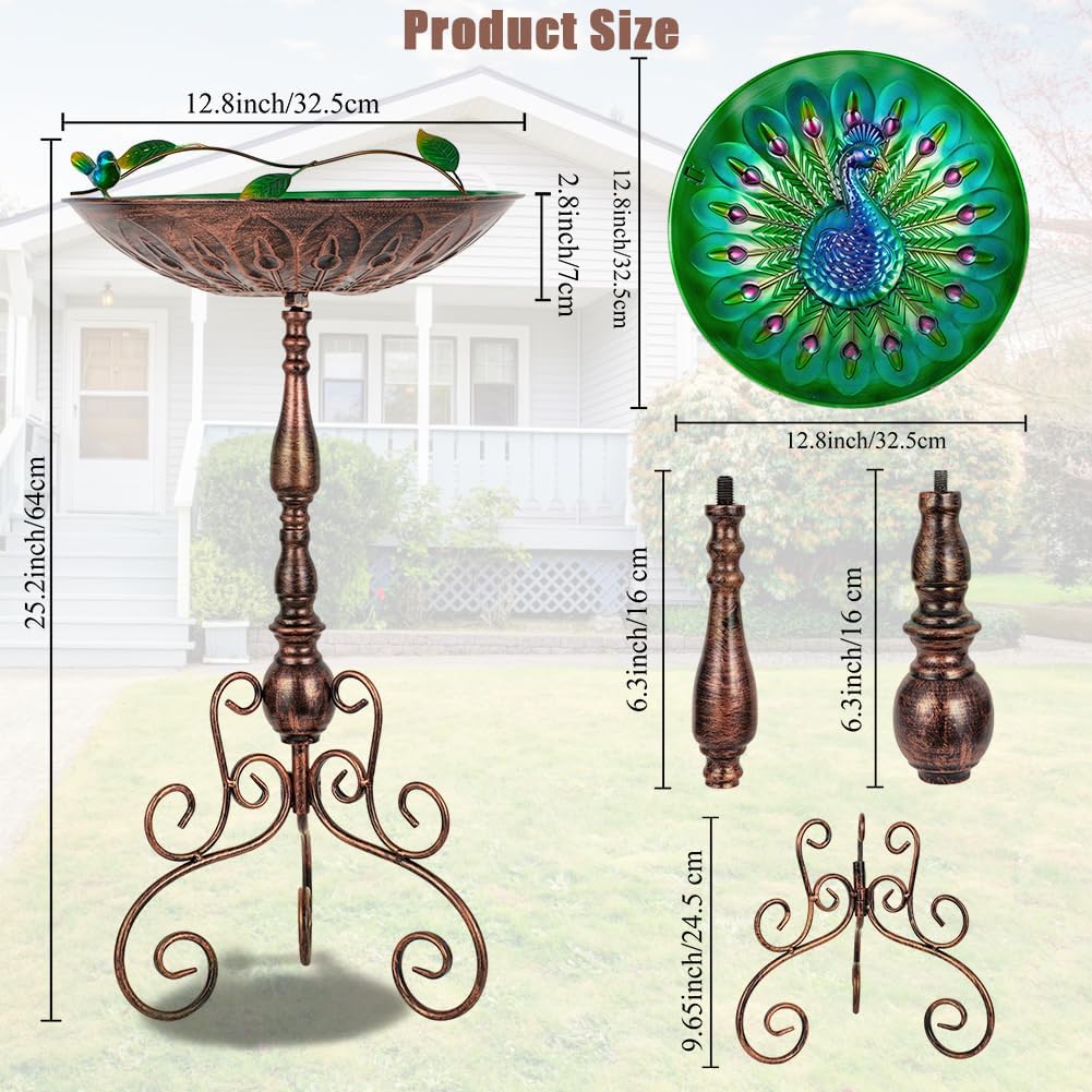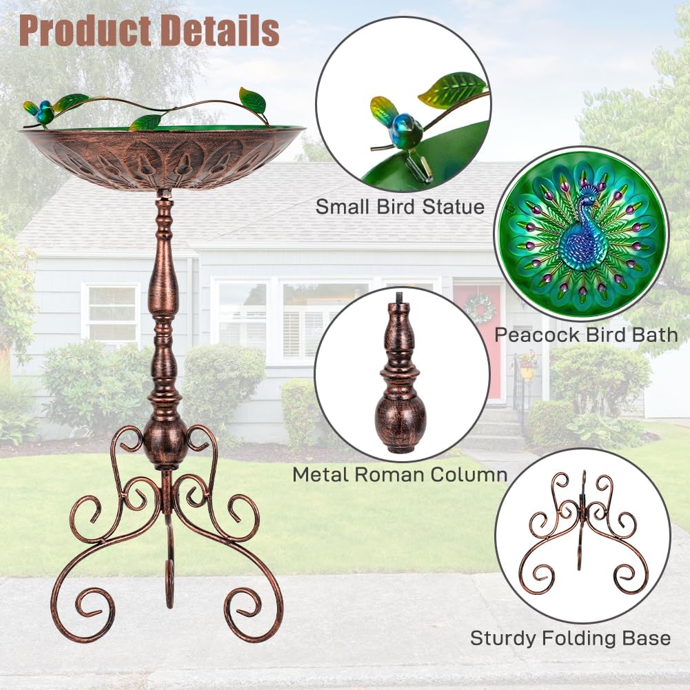 VEWOGARDEN Metal Bird Bath for Outside with Peacock Design Standing Birdbaths for Outdoors Garden Yard Patio Decoration