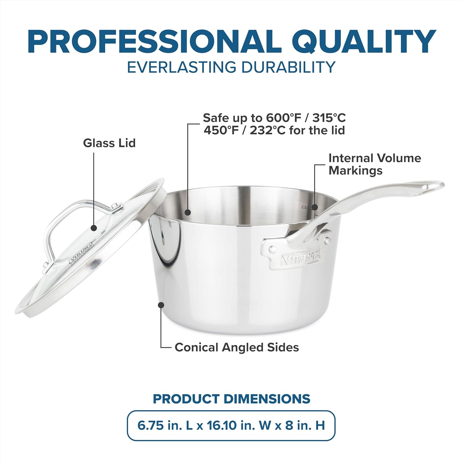 Create culinary masterpieces and elevate your kitchen with the Viking 3-Ply Stainless Metal 3.4 Qt Sauce Pan! Nice for each newbie and veteran cooks, this saucepan is ideal for cooking soup, broth, sauces, and its distinctive warmth retention gives constant and even cooking outcomes, permitting you to sear, broil, cut back and saute like a professional. Our cooktop sauce pan includes a sturdy 3 ply development consisting of a non-reactive 304 stainless inside, aluminum core, and a stainless-steel exterior, and the glossy mirrored end gives a superb complement to up to date kitchen decors. Our sauce pots are simple handy wash with sizzling water, are appropriate with all cooking surfaces together with fuel, electrical, and induction, and are secure as much as 600 levels F (315 levels C). Our sauce pots are backed by a restricted lifetime guarantee.