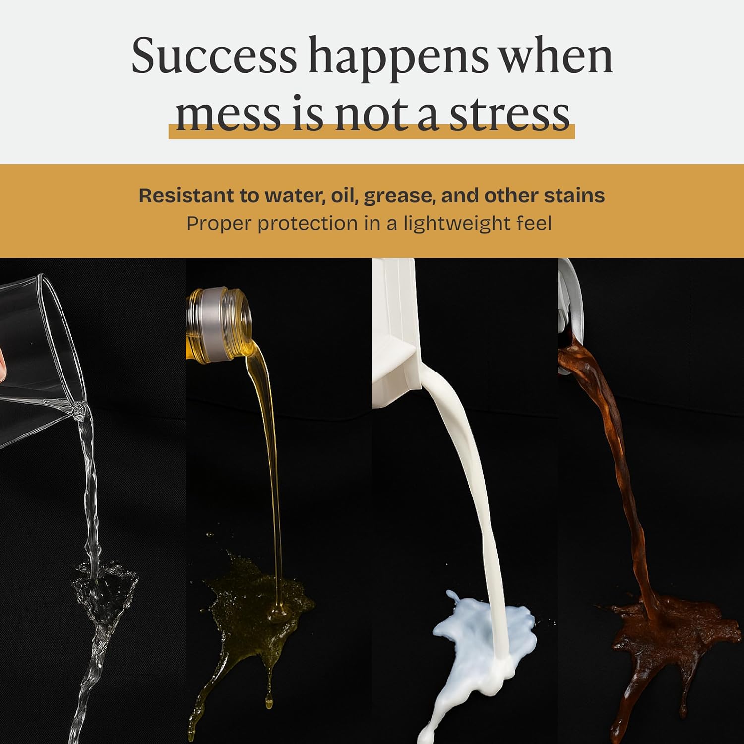 Sturdy & Light-weight. Crafted from high-quality Teflon coated polyester material, this kitchen apron is 3x extra sturdy than competing aprons. It’s a kitchen important that’s smooth to the contact and a dream to put on.