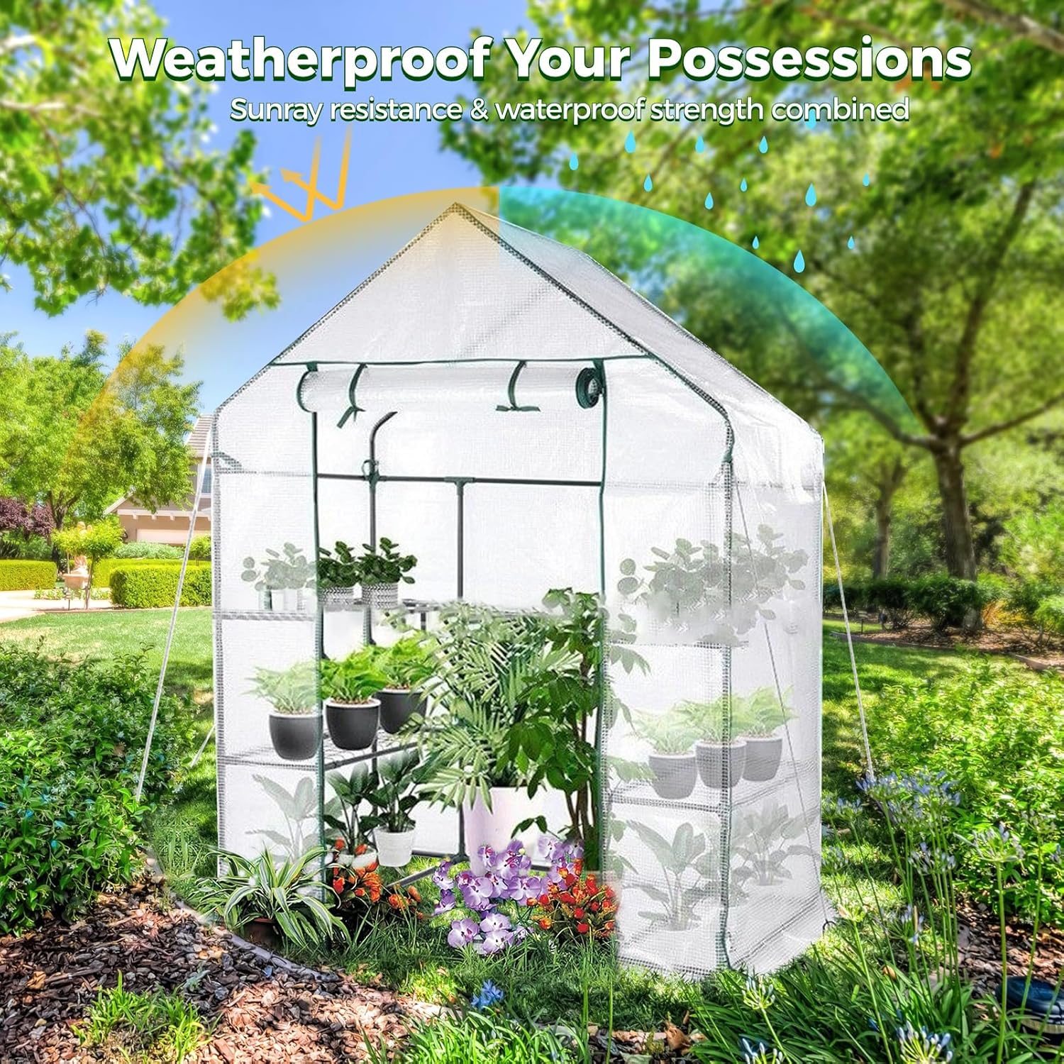 🌻【Straightforward Entry with Zippered Roll-Up Door】 Geared up with a handy roll-up door that includes a zipper, you may effortlessly convey bigger crops and potted specimens into the greenhouse. The design of the greenhouse ensures optimum and uniform air flow, enhancing the general high quality of your plant development. This accessible and user-friendly function simplifies gardening duties and ensures your crops obtain correct care